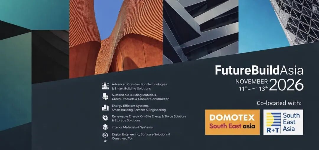 Asia has become a strategic choice for enterprises to broaden their growth potential. To better assist enterprises in expanding into regional markets, FutureBuild Asia, jointly with R+T, the global premier trade fair for sun shading systems and doors/gates industry and Domotex, the global leader in flooring & interior products, has officially been launched in Thailand and will take place from 11 to 13 November 2026 at the Bangkok International Trade & Exhibition Centre (BITEC) in Thailand.